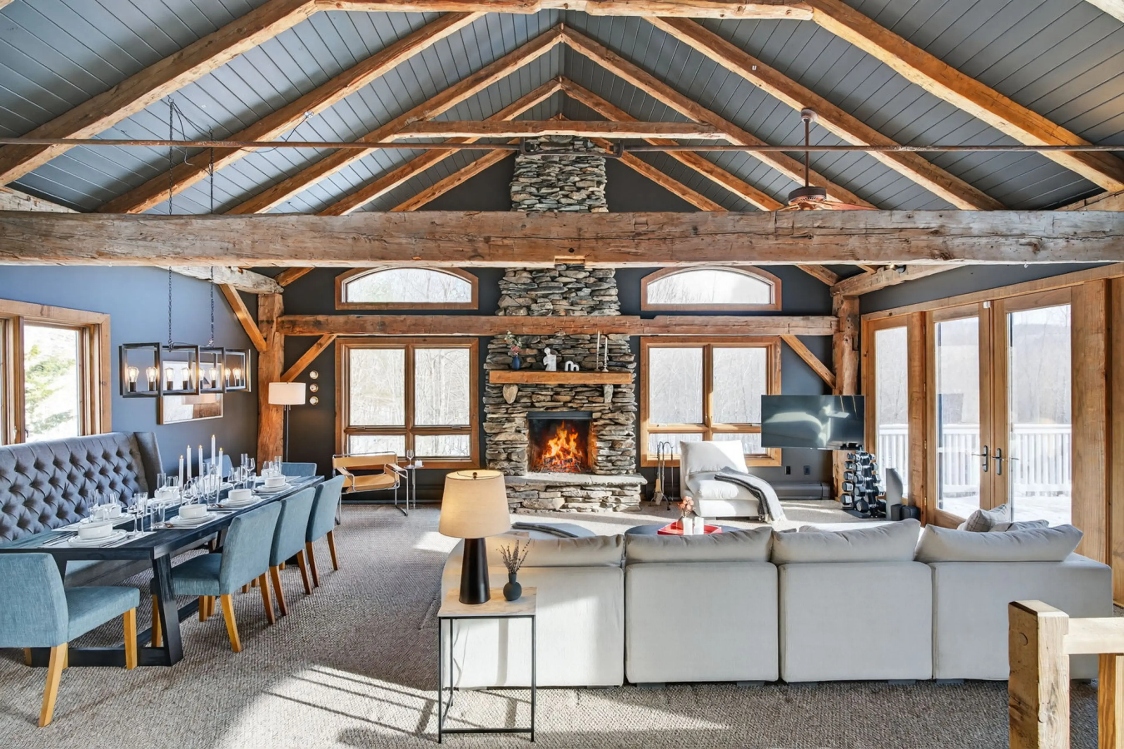 1840s barn turned Scandinavian mountain retreat with hot tub & private clubhouse